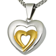Wholesale Cremation Jewelry Stainless Steel Married Hearts Front view of Wholesale Cremation Jewelry Stainless Steel Married Hearts Back shown of Wholesale Cremation Jewelry Stainless Steel Married Hearts urn opening shown of heart of gold cremation jewelry pendant |
