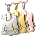 Wholesale Pet Cremation Jewelry Good Dog shown in silver and golds Wholesale Good Dog cremation jewelry pendant Urn opening shown of Wholesale Pet Cremation Jewelry: Good Dog |
