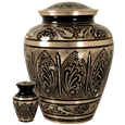 Wholesale Cremation Urns: Ornate Etched Black and Brass- 2 sizes