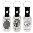 The Stainless Steel and Leather Key Ring includes strap and split ring and your choice of personalization to create a one of a kind memorial to honor a loved one.