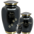 Wholesale Pet Cremation Urns: Dark Pewter with 2 Gold Bands -3 sizes available Item Number: 8414 dark The dark pewter with two gold bands pet cremation urn is a classic design that looks great with or without engraving. Threaded lid closure. Available in 3 sizes for the perfect fit for your furry friend's final resting place. Sizes: Keepsake: 3" tall | approx. 3 cubic inches of ash Small: 6" tall | approx. 60 cubic inches of ash Large: 6.5" diameter x 10" tall | approx. 200 cubic inches of ash