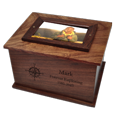 Wholesale Photo Wood Urn Item Number: SWH-018 This handsome wood urn has a photo window on top. This urn has engraving options- engrave directly into the wood or engrave on a large plaque (refer to photos for samples). Clip art is also available for more personalization at an additional cost. Please allow 3 day lead time if adding a photo is selected. Since wood is a unique resource- pattern or darkness of wood may vary slightly. Approximate Dimensions: Outer- 9"L x 7"W x 5.75"H Inner- 7.5"L x 5.5"W x 5"H Capacity: Approximately 200 cubic inches. Will hold the ashes of a loved one that weighed 200 lbs or less at the time of passing or may be used as a keepsake urn to hold a partial amount of the ashes. Wood: Solid Indian Rosewood. Since wood is a unique resource- pattern or darkness of wood may vary slightly. Large Plaque: 5"W x 2"H- may be added to top or front of the urn. Available in brass or silver finish. Photo Options: Use your own photo to place in window. Or submit your digital photo to create a black & white or color photo print on bright gloss paper for an additional cost. If your file is 1 MB or less, use the File Upload feature. For files larger than 1 MB, place your order, then submit your high resolution digital file in JPG format to service@newmemorialsdirect.com with order number. What if I choose an urn smaller than I need? Many families choose to share in the remembrance. We offer several smaller size urns to be used as keepsakes. You may also desire to scatter some of the remains in a favorite or cherished place. New Memorial Direct's unbeatable cremation urn value 100% satisfaction promise 5-star customer service