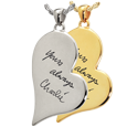 Wholesale Teardrop Heart with Handwriting available in silver or gold Wholesale Teardrop Heart with Handwriting urn jewelry in silver Wholesale Teardrop Heart with Handwriting available in ash-holding Wholesale Teardrop Heart with Handwriting available in stainless steel Back single and double compartment style shown for precious metal |